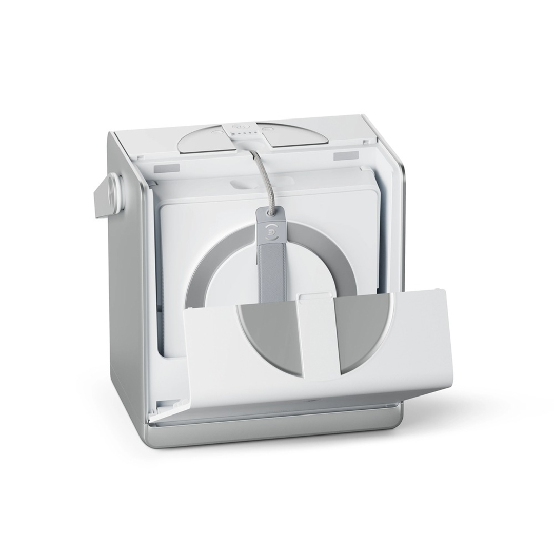 ایستگاه دارای دسته برای حمل راحت، جایگاهی برای نگهداری ربات و لوازم نظافت، و جمعکن خودکار کابل است. این یعنی پس از استفاده، همه چیز مرتب جمع میشود و برای استفاده بعدی آماده است.